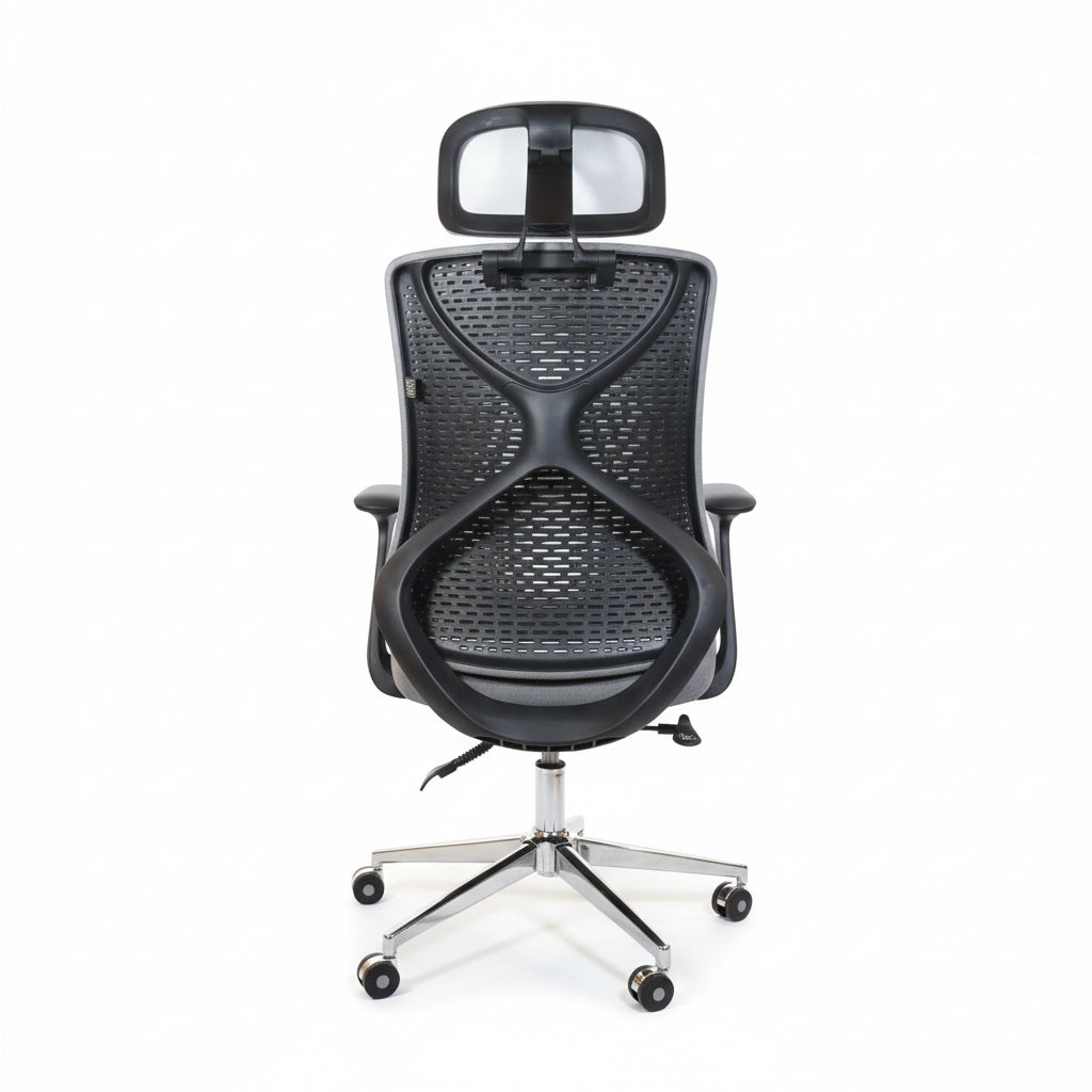 ERGONOMIC SUPPORT SYSTEM – The chair features a scientifically designed, X-shaped high-polymer back frame that mimics the human spine's natural curve. This structure provides robust lumbar support, reducing back fatigue and promoting a healthy posture during extended sitting sessions.