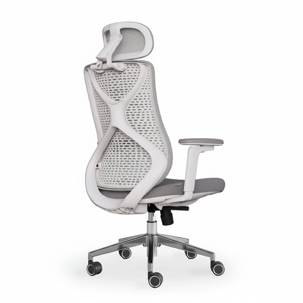 Elevate your workspace with the perfect blend of modern aesthetics and ergonomic engineering. Designed for the taskmasters of the 21st century, this chair combines a sleek White frame with premium White / Grey upholstery to create a professional look that fits any home or corporate office. The distinctive backrest structure not only adds a futuristic touch but ensures your spine remains supported through long hours of work.